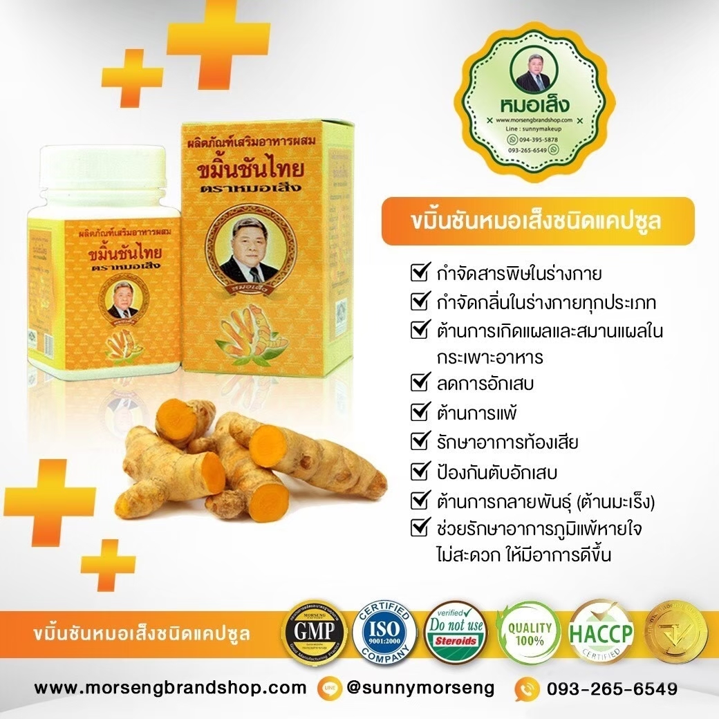 สรรพคุณขมิ้นชันไทยชนิดแคปซูล ตราหมอเส็ง :